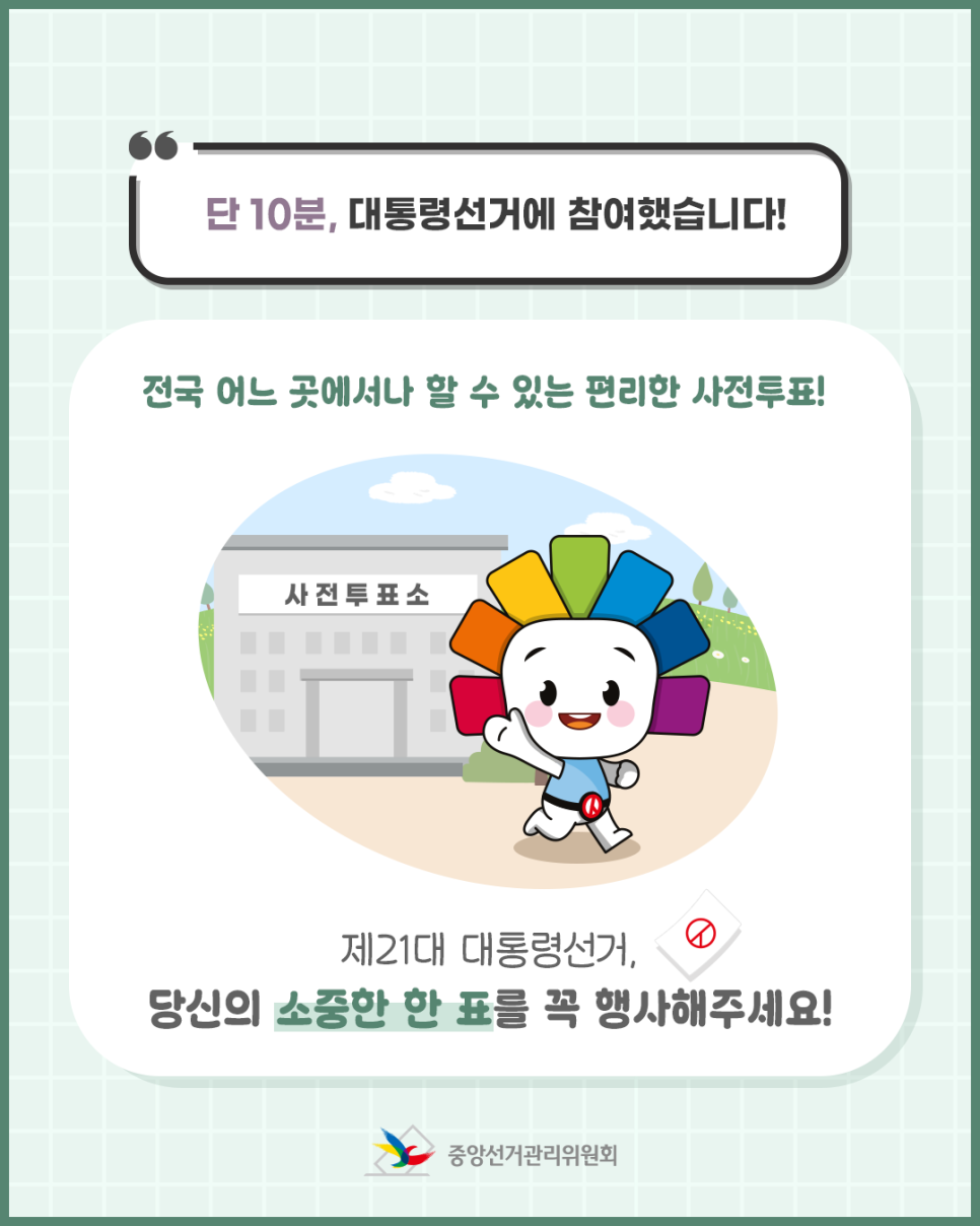 사전투표는 바쁜 일정 속에서도 소중한 권리를 행사할 수 있는 제도입니다.