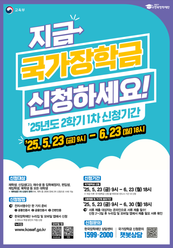 - 전화 상담: 한국장학재단 고객센터 ☎ 1599-2000,