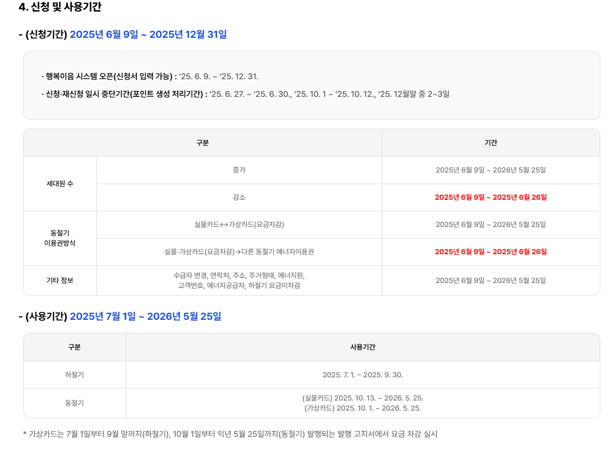- 하절기 사용기간: 2025년 7월 1일 ~ 9월 30일